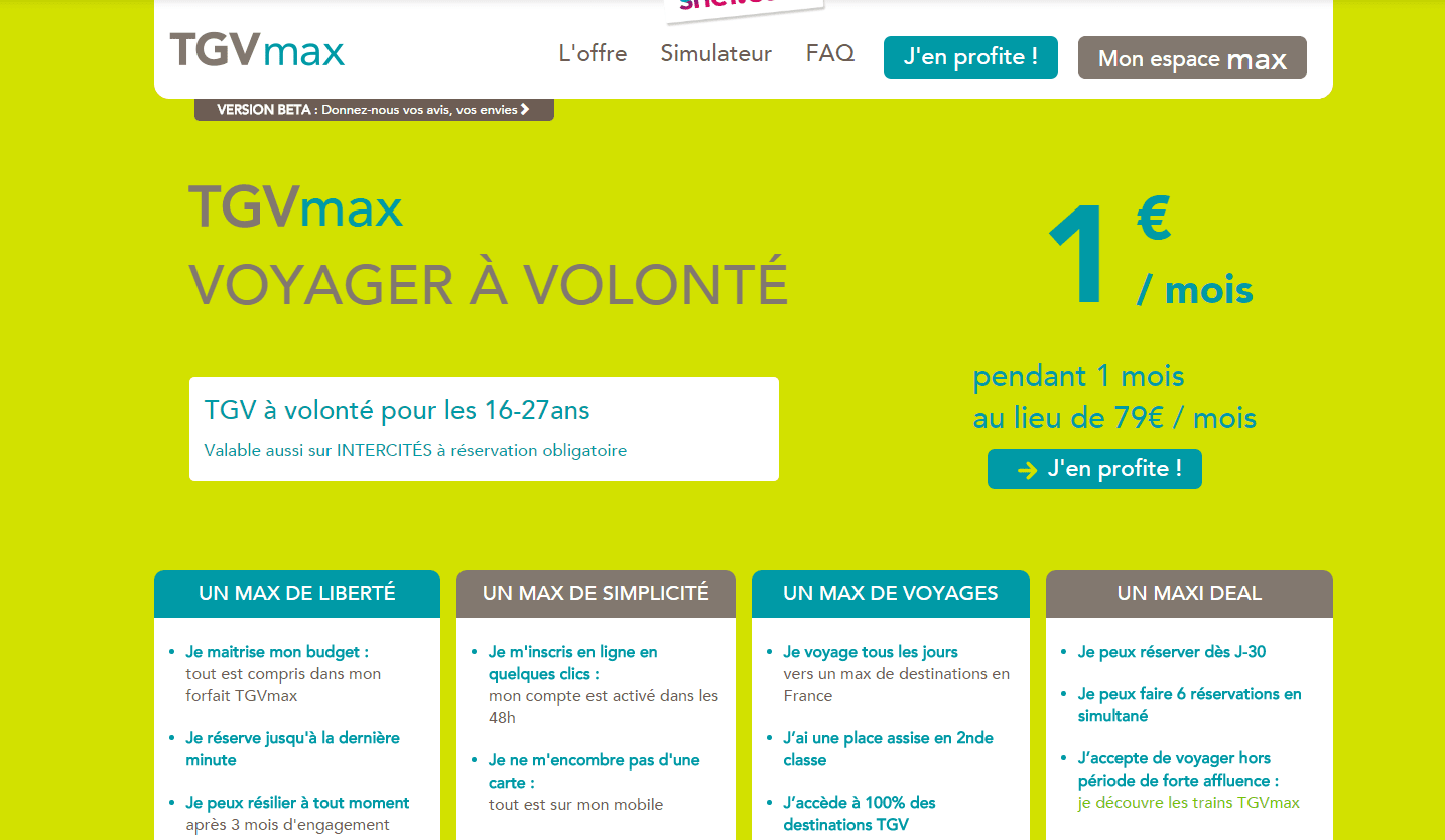 Le TGV max est une offre d’abonnement mise en place par la SNCF, qui est adressée pour tous les voyageurs âgés entre 16 et 27 ans sans exception. L’abonnement requiert juste une excellente disponibilité.